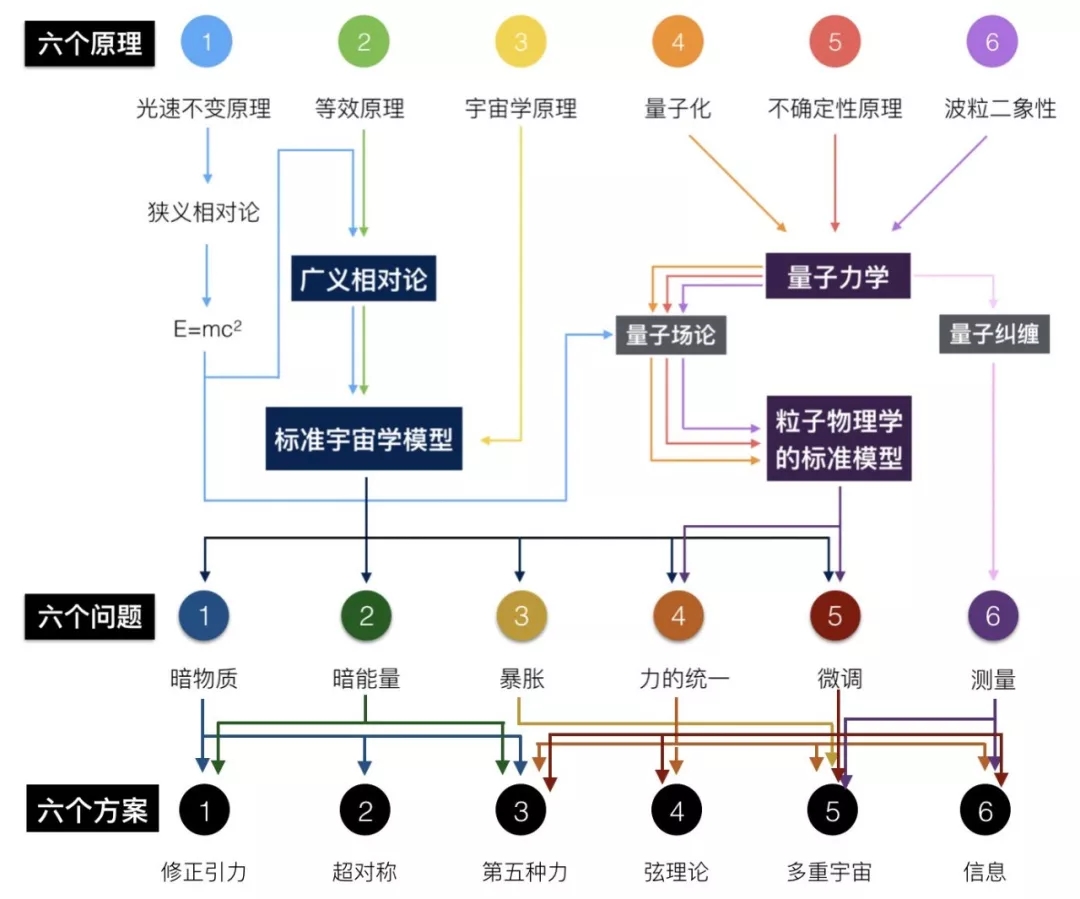 首先,愛因斯坦的廣義相對論顛覆了牛頓的引力理論,他將引力視作為時空的扭曲、而不是某種力。接著,普朗克、薛定諤和海森堡等人發(fā)展了理解亞原子世界的量子力學。在20世紀中期時,物理學家深刻的意識到在原子的內(nèi)部還有兩種基本力——強核力和弱核力。而到了下半個世紀,物理學家則建立了描述宇宙中已知所有粒子和基本力的標準模型。