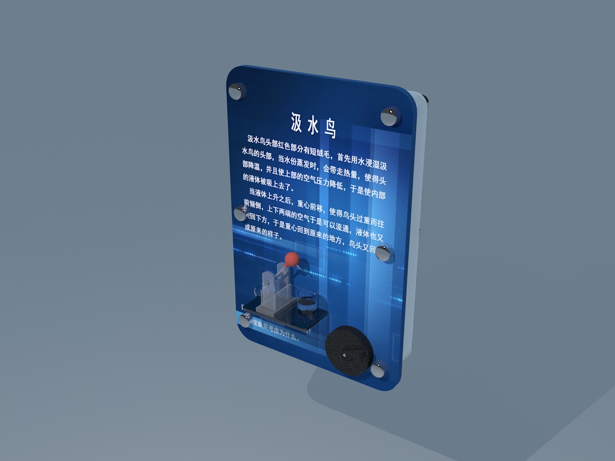 當(dāng)液體上升之后,重心前移,使得鳥(niǎo)頭過(guò)重而往前傾倒,上下兩端的空氣于是可以流通,液體也又流回下方,于是重心回到原來(lái)的地方,鳥(niǎo)頭又回復(fù)成原來(lái)的樣子。