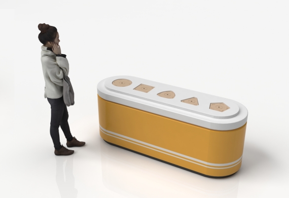 設(shè)計(jì)不同形狀的井口及對(duì)應(yīng)的井蓋模型。觀眾拿起各種形狀的井蓋蓋住井口,會(huì)發(fā)現(xiàn)只有圓形的井蓋不會(huì)掉入井口。