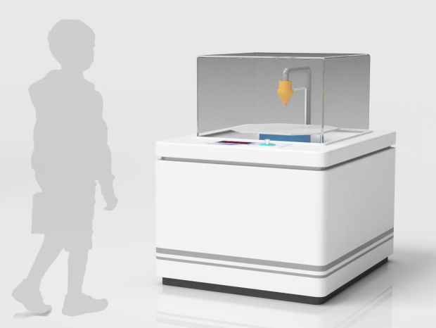 展品由音源振動器,振動板、沙粒回收裝置、自動送沙裝置、音響電路等組成,當啟動電源按鈕,送沙裝置向振動板上倒沙,同時振動器帶動振動板按設定頻率和幅度震動,駐波形成波節(jié)線模式,沙子聚集在這些線上,很快形成規(guī)則的排列圖案,通過旋轉(zhuǎn)按鈕調(diào)節(jié)頻率,可以看到在不同音調(diào)下所形成不同圖案。